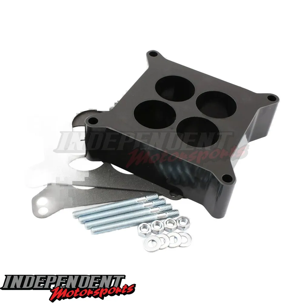 Aeroflow phenolic carburettor spacers improve air/fuel distribution and reduce the fuel temperature for a denser fuel mixture, reduce vapor lock, and add additional plenum volume to increase engine performance. They help with linkage clearance on aftermarket or custom throttle cable setups. Phenolic spacers also block heat transfer better than any material. The thermoset plastic provides a heat sink between an intake manifold and carburettor. With the harder material they will not warp heat cycles.