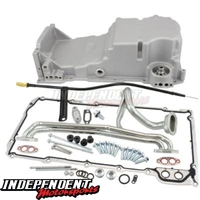 This Aeroflow Performance oil pan kit is designed to replace your rusted or damagedOE oil pan with quality, reliable reproduction style parts. Keep the oil, your engine's lifeblood, where it belongs. This front sump design oil pan is a direct replacement fit for Holden Commodore VT-VZ or GM part number GM12640748. This late model VZ style sump is often used for early Commodore, Nissan 180sx, Toyota 86 and Subaru BRZ LS engine conversions. It is also compatible with all LS Series engines including the LSA. Later VE/VF engines will be required to use engine block oil dipstick tube plug AF64-2196 (sold separately). The Cast aluminium sump comes with oil pick up, oil pan gasket, oil cooler block off, mounting bolts and dipstick and tube.