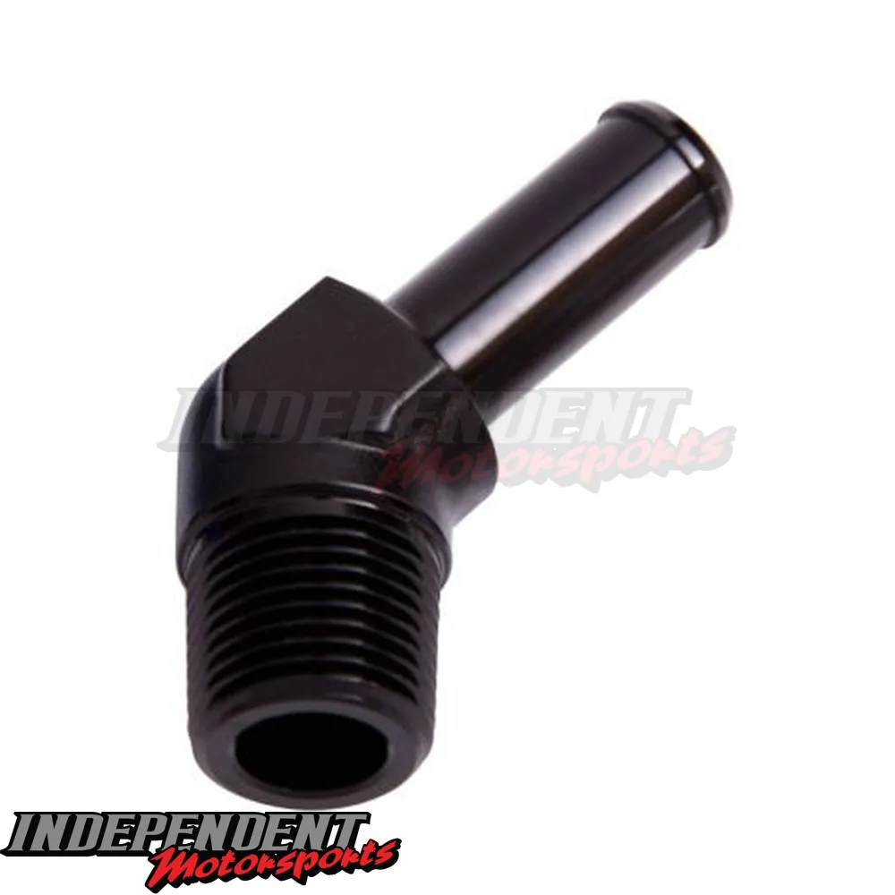 Easily adapt from NPT thread to a simple barb on a 45 degree angle. Barb sizing is to suit 400 & 500 series push on hose. Availablein various sizes with Blue, Black and Silver finishes.